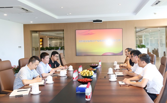 2020年8月18日,中國(浙江)知識產(chǎn)權保護中心副主任楊龍、浙江省知識產(chǎn)權研究與服務中心副主任金云翔、嘉興市市場監(jiān)督管理局知識產(chǎn)權處處長王勇峰等一行蒞臨公司指導工作。公司總經(jīng)理沈杰、副總經(jīng)理鮑紅亮、副總經(jīng)理尤金山進行了熱情的接待。