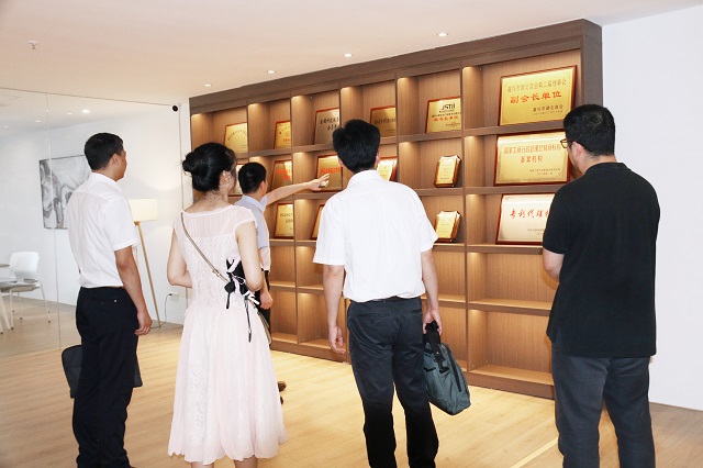 在沈總的陪同下,中國(浙江)知識產(chǎn)權保護中心、浙江省知識產(chǎn)權研究與服務中心及嘉興市市場監(jiān)督管理局領導一行參觀了我司的辦公區(qū)及各功能區(qū),對我司的辦公環(huán)境、文化建設等方面進行了全面了解。
