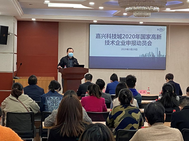 2020年3月19日,嘉興科技城組織召開2020年國家高新技術(shù)企業(yè)申報動員會,我司總經(jīng)理沈杰受邀出席并做專題講座??萍汲?/span>200多名企業(yè)代表參加了本次動員大會。