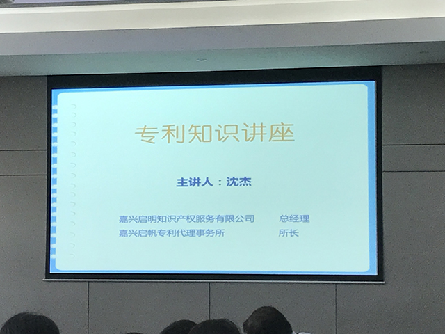 7月3日嘉興南洋學(xué)院邀請(qǐng)我司做專利知識(shí)講座,我司總經(jīng)理沈杰系統(tǒng)的介紹了專利申請(qǐng)和審批的程序及要點(diǎn),并通過(guò)實(shí)際案例進(jìn)行了深入細(xì)致的講解,強(qiáng)調(diào)了科研工作中進(jìn)行知識(shí)產(chǎn)權(quán)保護(hù)的重要性,建議科研教師在科研論文發(fā)表之前申請(qǐng)專利,以有效保護(hù)科研成果。