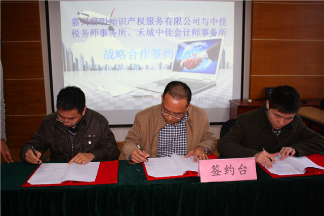 12月31日,嘉興啟明知識產(chǎn)權(quán)服務(wù)有限公司和嘉興中佳稅務(wù)師事務(wù)所有限公司建立戰(zhàn)略合作伙伴關(guān)系,舉行戰(zhàn)略合作伙伴簽約儀式。兩家單位都是嘉興地區(qū)的行業(yè)龍頭企業(yè),此次合作將進(jìn)一步鞏固和擴大各自的業(yè)務(wù)發(fā)展,強強聯(lián)手,共同做大做強。
