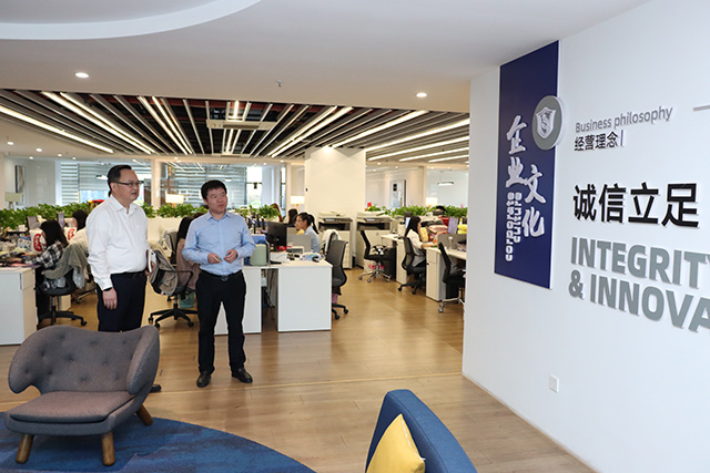 在沈總的陪同下,戴鋒主任一行參觀了公司的辦公區(qū)及各功能區(qū)。沈總就公司的業(yè)務內(nèi)容、發(fā)展歷程、發(fā)展狀況及未來的發(fā)展規(guī)劃等進行了詳細匯報。
